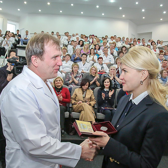 Під час відвідання Обласної клінічної лікарні Ю. Світлична передала державну нагороду завідувачу відділення Регіонального перинатального центру лікарні Роману Сафонову (йому присвоєно звання «Заслужений лікар України»). Також керівник області вручила співробітникам Обласної клінічної лікарні відзнаки ХОДА.