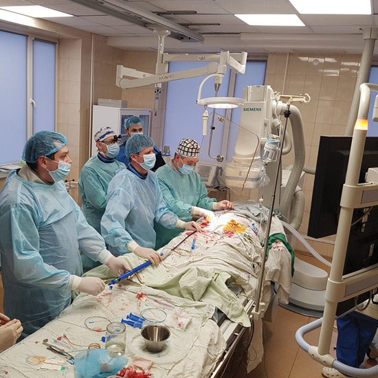 Вперше таку операцію на Закарпатті провели у січні 2019 р. в Обласному кардіодиспансері. Одна з особливостей втручання — спільна робота команди рентген-хірургів, ендоваскулярних хірургів та кардіохірургів. Медики називають такі операції гібридними, оскільки при виконанні потрібні знання, навички та спільна злагоджена робота медичних фахівців різних спеціальностей. Важлива для таких операцій і наявність високотехнологічного обладнання, зокрема ангіографічної системи. Завдяки коштам, виділеним в рамках спільного проекту Світового банку та Міністерства охорони здоров’я України «Поліпшення охорони здоров’я на службі у людей», таке обладнання є в Закарпатському обласному клінічному кардіологічному диспансері.