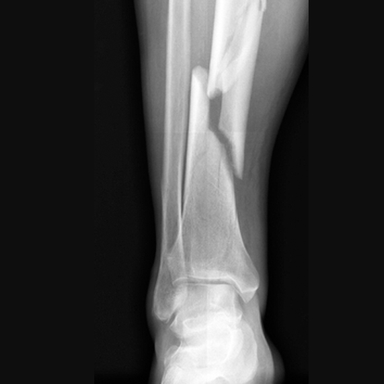 Він буває відкритим і закритим. Для відкритого перелому характерні біль, наявність рани у місці перелому та кровотеча, неприродне положення кінцівки, хрускіт у місці перелому та уламки кістки в рані.