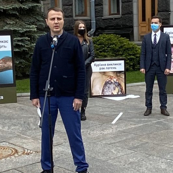 28 травня 2020 р. біля Офісу Президента України відбувся брифінг, присвячений Всесвітньому дню без тютюну. Цьогорічною темою ВООЗ до Всесвітнього дня без тютюну є «Захист юнацтва від маніпуляцій тютюнової індустрії та запобігання їх залученню до вживання тютюну та нікотину». Всесвітній день без тютюну, запроваджений у 1987 р., відзначається 31 травня щороку.