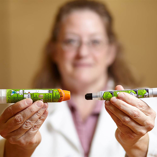 Слід зазначити, що більшість надзвичайних ситуацій, пов’язаних із раптовим розвитком анафілаксії внаслідок укусів комах або дії харчових алергенів, відбуваються за межами лікарень. У таких ситуаціях рекомендоване негайне внутрішньом’язове введення епінефрину за допомогою автоінжектора (0,15–0,5 мг) у зовнішній бік стегна (m. vastus lateralis). Повторні ін’єкції рекомендовано проводити із періодичністю 10–15 хв до досягнення клінічно значущого ефекту.
