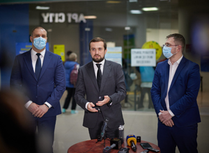 Кирило Тимошенко разом з головою Полтавської облдержадміністрації Олегом Синєгубовим і головним державним санітарним лікарем України Ігорем Кузіним відвідали центр масової вакцинації у Полтаві.