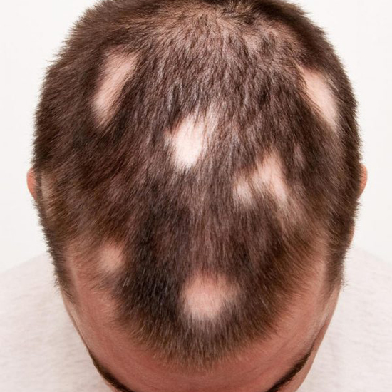 Вогнищева алопеція (ВА) відома також як гніздова алопеція — хронічне аутоімунне запальне захворювання, яке уражує волосяний фолікул, а іноді й нігті. Алопеція характеризується рецидивуючою нерубцевою втратою волосся, і хоча ВА не чинить прямого впливу на загальний стан, вона значно впливає на якість життя пацієнтів, оскільки супроводжується значними косметичними вадами. Зазвичай волосся втрачається на шкірі голови, але може бути задіяна будь-яка ділянка шкіри. Статистичні дані свідчать, що у  близько 2% населення планети відмічають ВА, як правило, захворювання виникає у дітей та осіб молодого віку (до 30 років) незалежно від статі [1]. Захворювання починається з появи на волосистій частині голови одного або декількох округлих чітко обмежених вогнищ повного випадіння волосся без будь-яких змін з боку шкіри. Можуть також бути наявні ознаки легкого дерматиту (почервоніння шкіри) в ділянці випадіння волосся. При прогресуванні захворювання наявне злиття вогнищ з формуванням тотального облисіння.