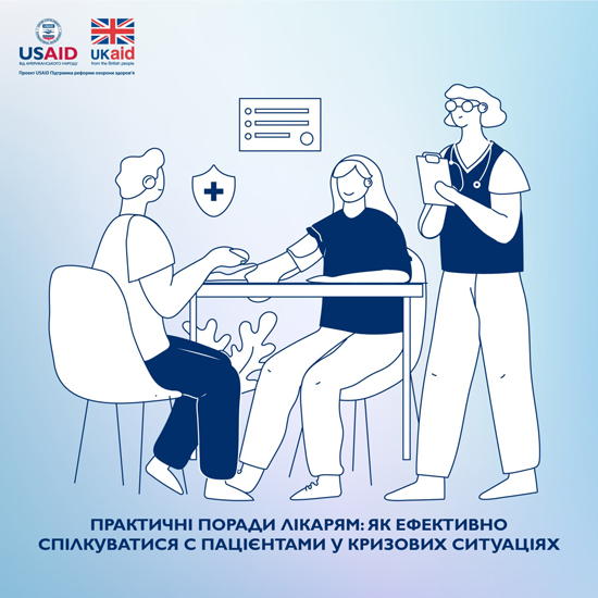 Формування культури комунікацій у просторі «лікар-пацієнт», зміна підходу до процесу лікування та ставлення до осіб, що звернулися за допомогою в умовах війни, — ці теми стали новими для кожного з нас, тому практичні поради, розроблені фахівцями проєкту USAID «Підтримка реформи охорони здоров’я», стануть у пригоді для побудови довірчих та відкритих стосунків між працівниками сфери охорони здоров’я та пацієнтами.