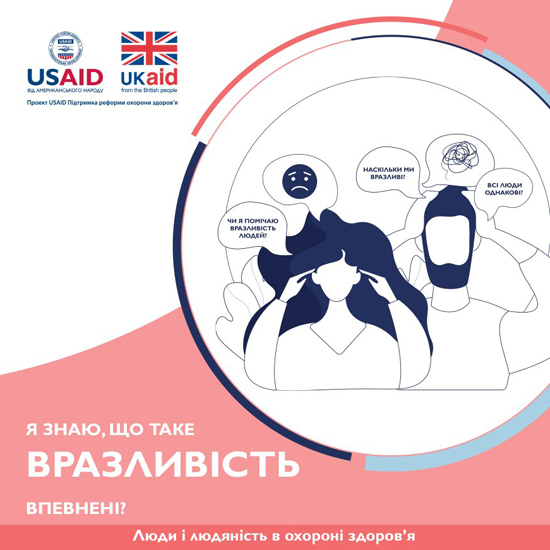 Команда Проєкту Агентства США з міжнародного розвитку (United States Agency for International Development — USAID) «Підтримка реформи охорони здоров’я» (USAID HRS) підготувала брошуру «Я знаю, що таке вразливість. Впевнені?» у рамках серії публікацій «Люди та людяність в охороні здоров’я».