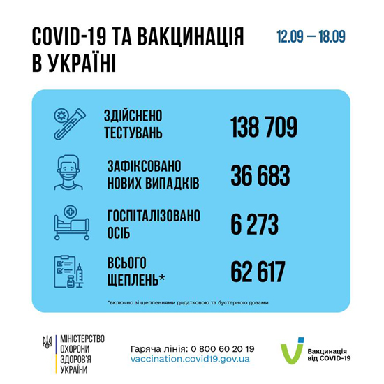 МОЗ України інформує про захворюваність на COVID-19 та кампанію з вакцинації.