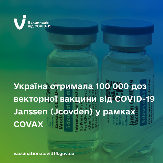Дитячий фонд ООН (ЮНІСЕФ) доставив в Україну 100 тис. доз векторної вакцини від COVID-19 Janssen (Jcovden) у рамках міжнародної ініціативи COVAX.