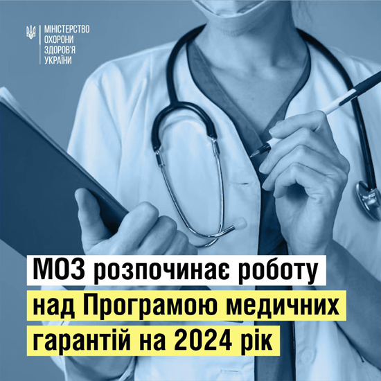 Міністерство охорони здоров’я разом із Національною службою здоров’я України (НСЗУ) та міжнародними консультантами із Всесвітньої організації охорони здоров’я (ВООЗ) розпочинає роботу над створенням Програми медичних гарантій на 2024 р.