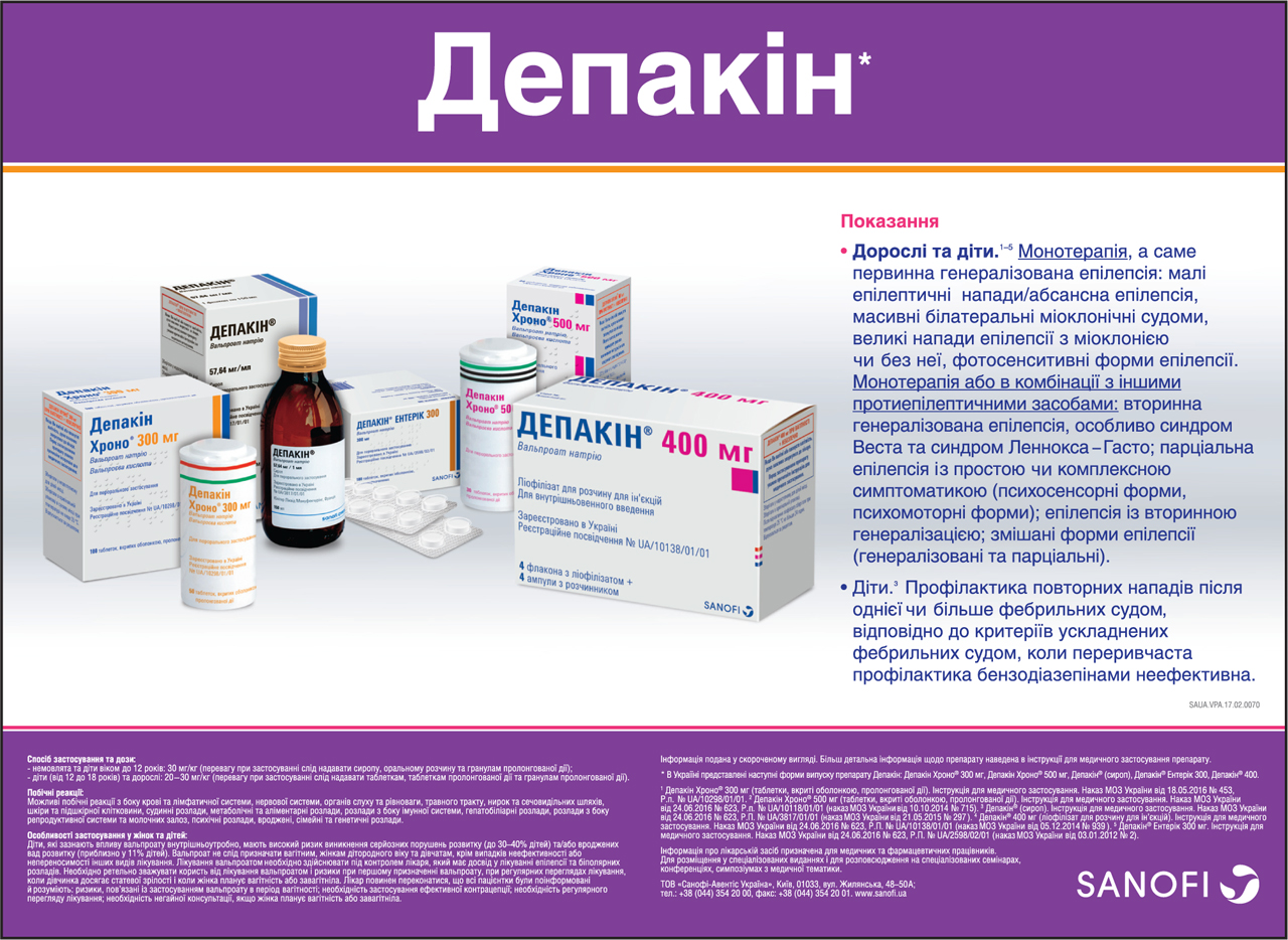 - Мартинюк В.Ю., Коноплянко Т.В., Свистільник В.О. та ін. (2012) Лікування епілепсії, епілептичних синдромів у дітей. Метод. рекомендації. Київ, 18 с.