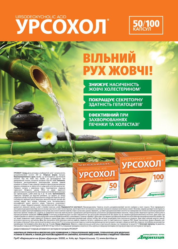 Як відзначив спікер, для клініциста важливим є те, що застосування препарату дозволяє зменшити вираженість проявів холестазу, цитолізу, запобігти розвитку фіброзу та цирозу печінки, а його довготривалим ефектом є уповільнення прогресування та покращення виживаності пацієнтів із захворюваннями печінки. Так, частота розвитку цирозу печінки у пацієнтів із первинним біліарним цирозом на тлі застосування УДХК становить 13% (при прийомі плацебо — 49%), виникнення портальної гіпертензії — 16 і 58% відповідно. Проведені у США та країнах Західної Європи дослідження підтвердили ефективність застосування препарату у високих (>30 мг/кг маси тіла) дозах при первинному склерозуючому холангіті. Необхідно пам’ятати, наголосив О. Бабак, що Американське управління з контролю якості харчових продуктів і лікарських препаратів (Food and Drug Administration — FDA), Європейська асоціація з вивчення захворювань печінки (European Association for the Study of the Liver — EASL) та Американська асоціація з вивчення захворювань печінки (American Association for the Study of Liver Diseases — AASLD) рекомендують використовувати різноманітність ефектів УДХК, які визначають достовірне уповільнення прогресування захворювань печінки.