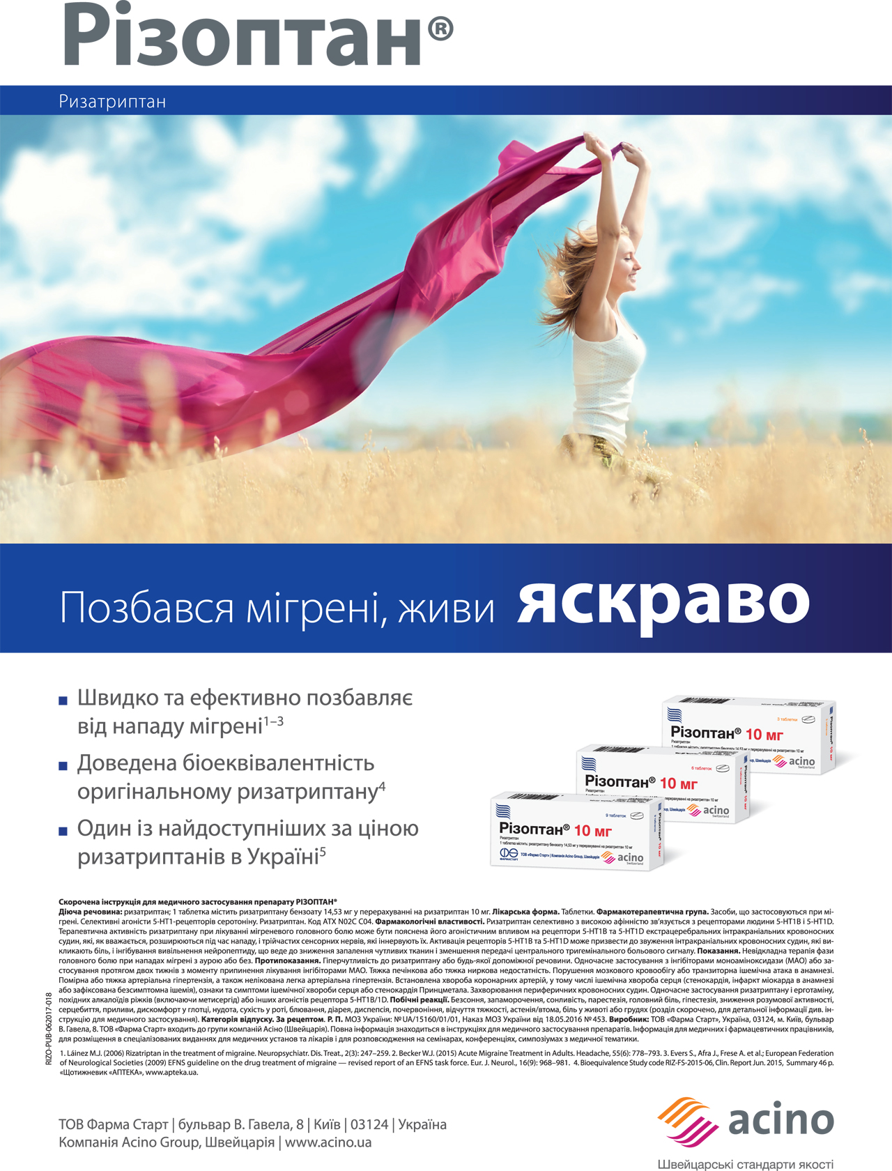 Поширеність захворювання серед жінок становить 36,6%, чоловіків — 15,9%, що підтверджує той факт, що жінки хворіють у 2–3 рази частіше. Більше ніж половина учасників дослідження з мігренню за шкалою MIDAS мали ІІ–ІV ступінь захворювання, тобто потребували лікування при гострому нападі головного болю триптанами. Враховуючи особливості фармакокінетики та фармакодинаміки, ризатриптан (Різоптан®) є препаратом вибору в цій групі хворих.