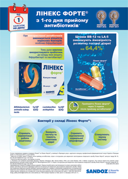 Ключові слова: кишкова мікробіота, дисбіоз, пробіотики, біфідобактерії, лактобацили, Лінекс Форте®.