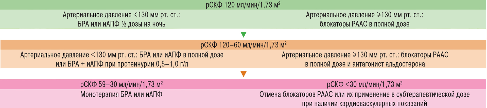 Возвращаясь к терапевтической тактике современной ренопротекции, представляем алгоритм применения блокаторов РААС (рис. 1) (Иванов Д.Д., 2015).