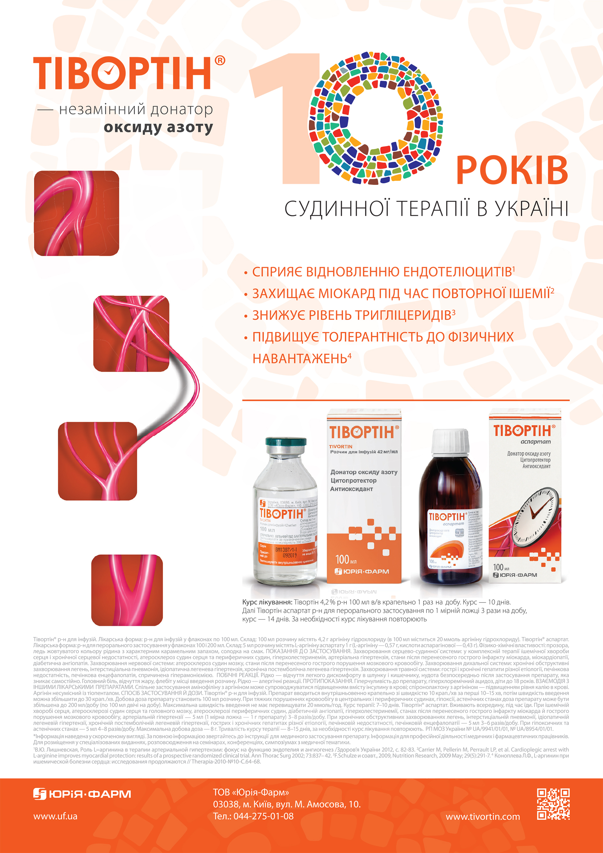 Материал подготовлен при поддержке фармацевтической компании «Юрия-Фарм» (Украина) — производителя препарата L-аргинина гидрохлорида в инъекционной форме Тивортин®.