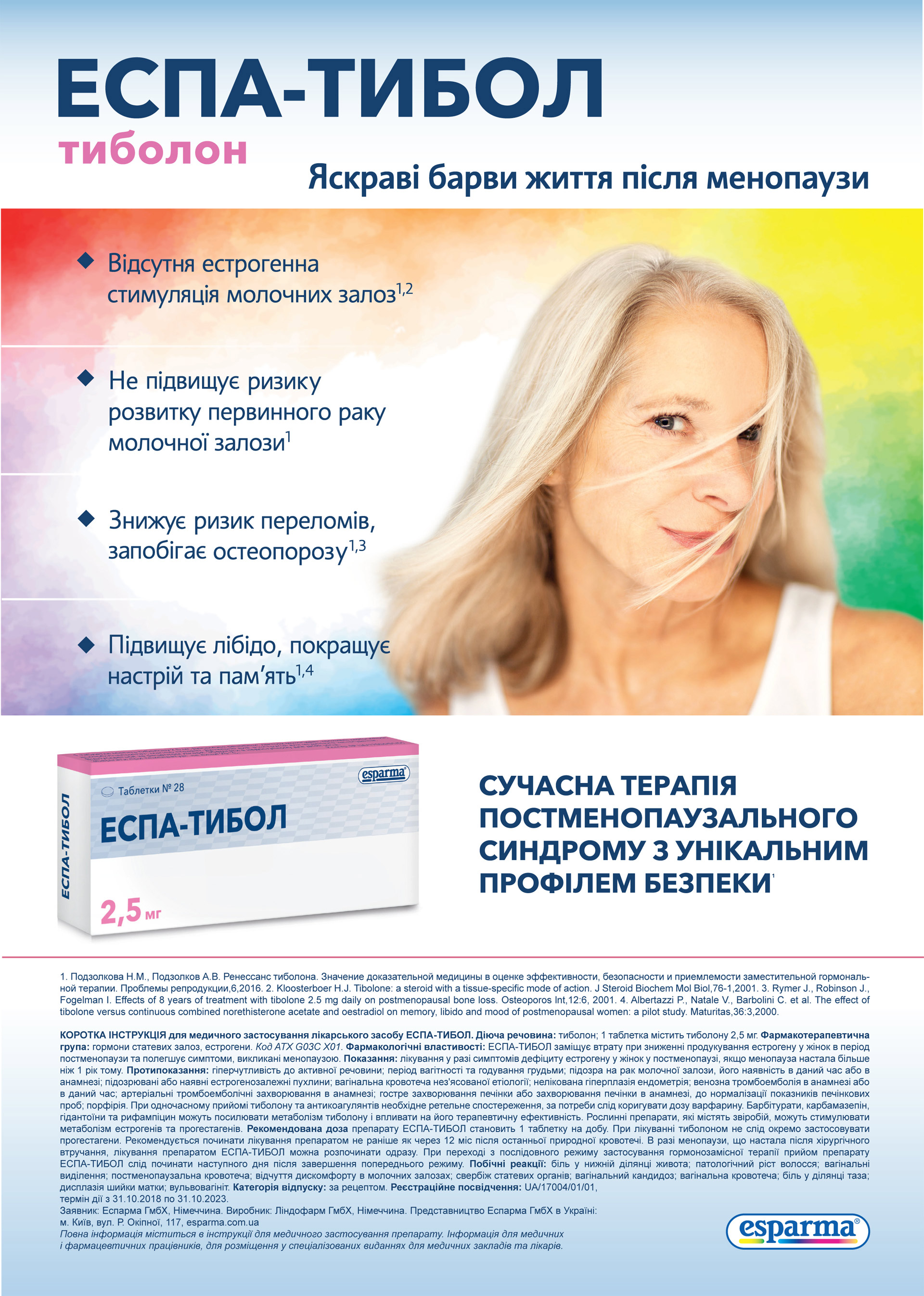 В настоящее время единственным препаратом тиболона, представленным на рынке Украины, является препарат ЭСПА-ТИБОЛ компании «Эспарма ГмбХ», Германия, сочетающий традиционно высокое немецкое качество и доступную цену.