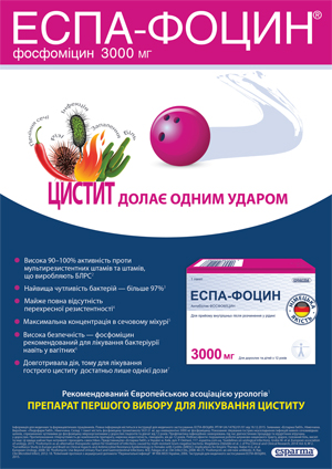 3. При РІСШ, що супроводжуються агресивним перебігом, високою бактеріурією та лейкоцитурією, поєднанням різних уропатогенів у культуральному дослідженні, прийом препарату Еспа-фоцин позитивно впливає на динаміку клінічних та лабораторних даних, а також на якість життя хворих.