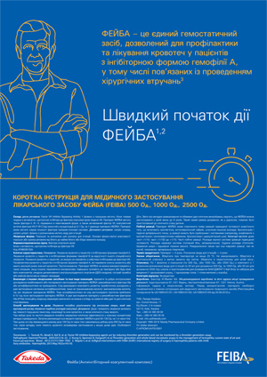 Одним із представників aPCC на ринку України є препарат Фейба — концентрат активованого протромбінового комплексу. Гемостатичний ефект препарату досягається його специфічними компонентами — FII як зимоген та активований FX. Ефективність та безпеку aPCC стосовно профілактики та усунення кровотеч у пацієнтів з ІФГ А та В підтверджено низкою клінічних досліджень. Так, результати проспективного мультицентрового дослідження Pro-FEIBA продемонстрували, що у пацієнтів, яким вводили aPCC у дозі 85 МО на 1 кг маси тіла, відзначалося суттєве зниження всіх епізодів кровотеч на 62%, гемартрозів на 61% та крововиливів у суглоби-мішені — на 72% (Leissinger C. et al., 2011). Результати іншого рандомізованого дослідження PROOF, в якому брали участь 17 медичних центрів із різних країн, продемонстрували, що терапія aPCC у дозі 85±15 МО була асоційована зі значно меншою кількістю кровотеч — як при профілактичному введенні препарату, так і при введенні препарату за вимогою (Antunes S.V. et al., 2013).