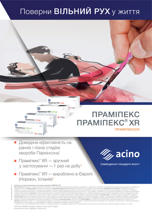 Із 1998 р. набув широкого клінічного застосування в усьому світі неерголіновий АДР праміпексол, який діє переважно на D3-підтип D2-дофамінових рецепторів у стріатумі та лімбічній системі [4]. Препарат характеризується високою біологічною доступністю і, на відміну від леводопи, має тривалий період напіввиведення (до 12 год).