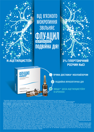 Одним із добре відомих в Україні засобів патогенетичного призначення мультимодальної дії для швидкої і продуктивної евакуації в’язкого мокротиння у пацієнтів із гострим бронхітом та ХБ є ФЛУ-АЦИЛ бронхо у розчині для небулайзера. Він складається з NAC, що чинить муколітичну дію при безпосередньому контакті зі слизом, та 3% гіпертонічного розчину NaCl, який забирає воду з внутрішньоклітинного простору в позаклітинний шляхом осмосу та збільшує частку води у бронхіальному секреті, розріджує його і таким чином полегшує його видалення.