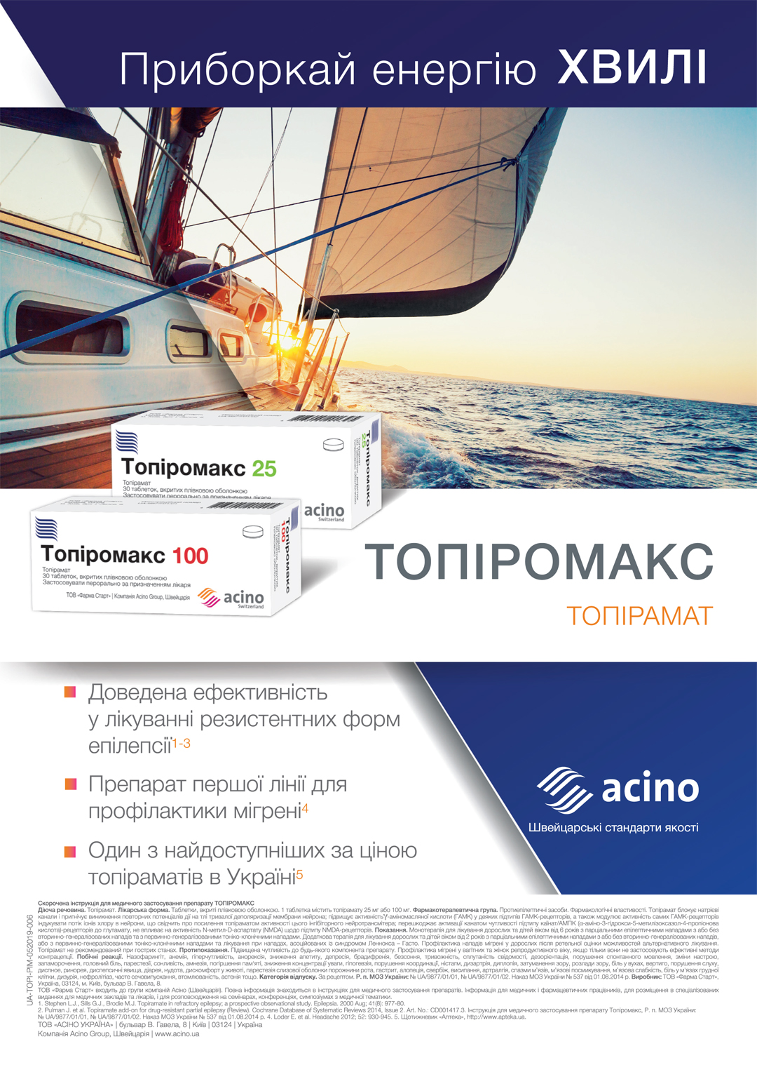 Топірамат є одним з препаратів 1-ї лінії, які рекомендовані при лікуванні станів із пароксизмальною активністю. Механізм дії топірамату полягає у ферментозалежному блокуванні потенціалзалежних Na+-каналів, що забезпечує деполяризацію мембрани нейронів та тривало обмежує виникнення повторних потенціалів. Молекула топірамату впливає на нейротрансмітерну активність ГАМК-рецепторів внаслідок пригнічення глутаматних інотропних рецепторів і, таким чином, модулює проведення сигналів у хімічних синапсах. Найбільша доказова база накопичена щодо протисудомної ефективності топірамату при лікуванні епілепсії як у монотерапії, так і в комбінації з іншими протиепілептичними препаратами. Так, результати контрольованого дослідження з випадковою вибіркою засвідчили, що за умови застосування топірамату в дозі 125 мг/добу частота нападів в інтервенційній групі знизилася на 36% впродовж 28 днів (р=0,004) [19].
