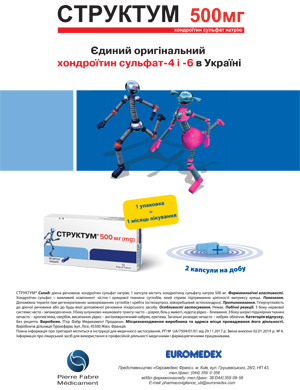 — В Україні та в деяких інших країнах (Румунія, Росія) застосовують внутрішньом’язові форми хондроїтин сульфату, проте у Франції це не прийнято. У Франції дотримання офіційних рекомендацій вкрай важливе. Тому що пацієнти можуть попросити вас обґрунтувати, чому ви призначили або не призначили терапію згідно з офіційними рекомендаціями. Особисто я надаю перевагу пероральним формам хондроїтин сульфату (Структум), які є виключно лікарським препаратом.