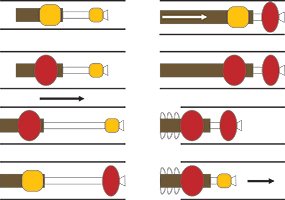 де еще «Push-and-Pull-Enteroskopie» (PPE). Уже из названия становится понятным и сам принцип этого предложенного в 2001 г. японцами (Yamamoto H. et al., 2001) и впервые в 2003 г. примененного на Западе исследования. Передвижение по тонкому кишечнику телескопически выдвигаемого зонда длиной около двух метров, состоящего из непосредственно энтероскопа и наружного зонда большего диаметра, осуществляется путем «нанизывания» на эндоскоп кишки, что становится возможным за счет периодического раздувания и перемещения относительно друг друга двух баллонов, один из которых находится непосредственно на конце эндоскопа, а другой — на конце наружного зонда. Так как по структуре своей двухбаллонный энтероскоп является обычным эндоскопом, он обладает и всеми его