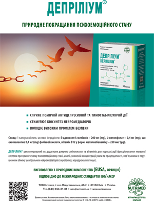 Одним із таких засобів, що принципово відрізняється від конвенційних препаратів антидепресантів і характеризує іншу стратегію фармакотерапевтичного впливу — нейрометаболічну фармакотерапію, є інноваційна комбінована вітчизняна дієтична добавка Депріліум®, до складу якої входять: