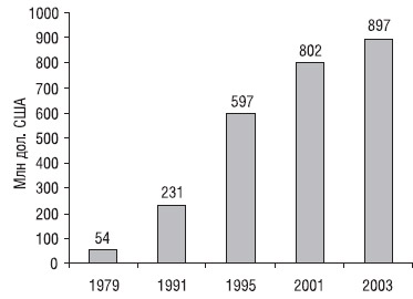 Рис. 1. Объем инвестиций, необходимых для разработки одного нового препарата