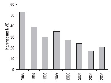 Рис. 2. Количество NME, получивших разрешение на маркетинг в США (1996–2003 гг.)