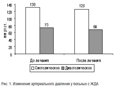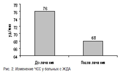 За время наблюдения в исследуемой группе статистически значимой динамики артериального давления и частоты сердечных сокращений не выявлено (рис. 1, 2).