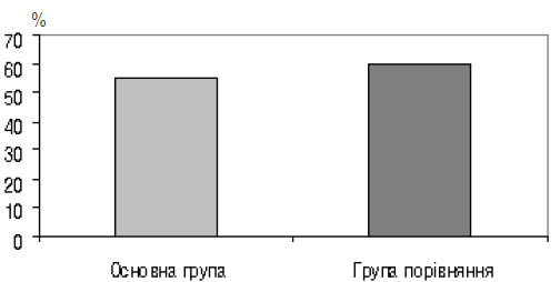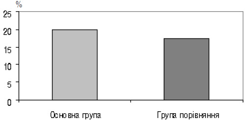 У групі порівняння відзначали гірші показники, оскільки за стандартною методикою корекцію проводили лише у разі наявності клінічної картини загрози переривання вагітності, частота якої була достовірно вищою.