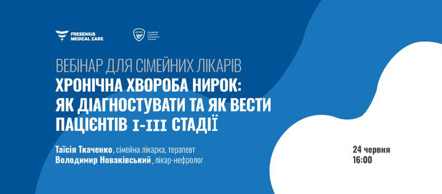 24 червня 2020 р. о 16:00 відбудеться вебінар для сімейних лікарів на тему «Хронічна хвороба нирок»