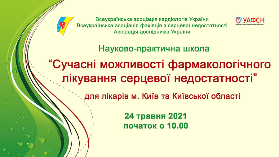 Шановні колеги! Запрошуємо вас до участі у Науково-практичній школі «Сучасні можливості фармакологічного лікування серцевої недостатності», яка відбудеться 24 травня.
