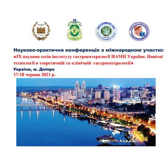 Науково-практична конференція з міжнародною участю «IX Наукова сесія Інституту гастроентерології НАМН України. Новітні технології в теоретичній та клінічній гастроентерології» Україна, м. Дніпро, 17–18 червня 2021 р.