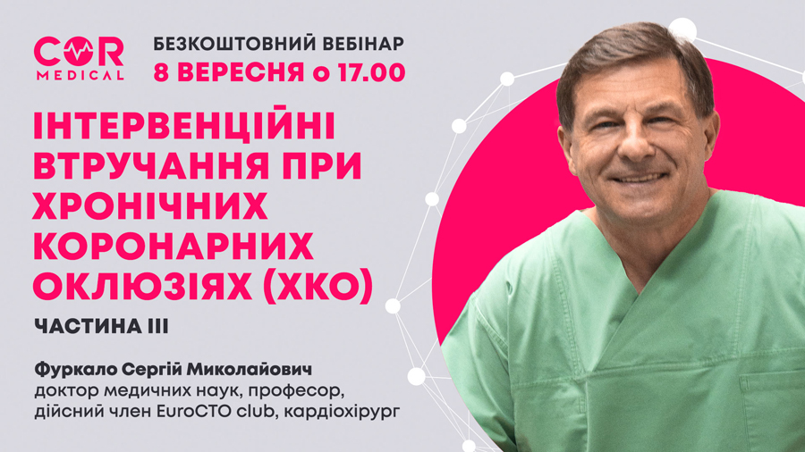 COR-Medical запрошує інтервенційних спеціалістів (будь-якого рівня), кардіологів, кардіохірургів та всіх, хто працює в цій галузі, відвідати ІІІ блок серії вебінарів на тему «Інтервенційні втручання при хронічних коронарних оклюзіях (ХКО)», який відбудеться 8 вересня 2022 р. о 17:00.