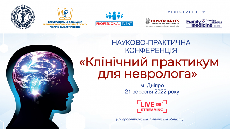 Всеукраїнська асоціація безперервної професійної освіти лікарів і фармацевтів за підтримки Національного університету охорони здоров’я України імені П.Л. Шупика ЗАПРОШУЄ БЕЗКОШТОВНО взяти участь у науково-практичній фаховій школі-семінарі «Клінічний практикум для невролога», що відбудеться 21 вересня з онлайн-трансляцією наживо одразу в усіх містах і населених пунктах Дніпропетровської та Запорізької областей!