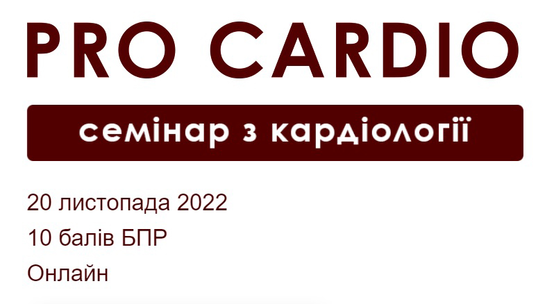 20 листопада 2022 р. в режимі онлайн відбудеться семінар «PRO CARDIO. Семінар з кардіології».