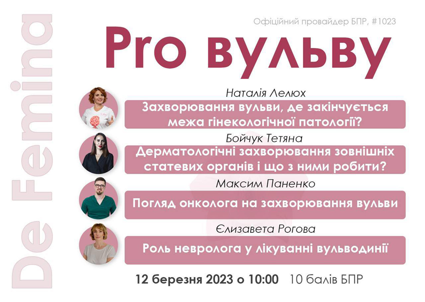 12 березня 2023 р. відбудеться безкоштовний онлайн-семінар «DE Femina: PRO вульву».