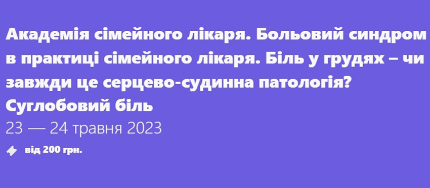 23–24 травня 2023 р. відбудеться семінар на тему «Больовий синдром в практиці сімейного лікаря. Біль у грудях — чи завжди це серцево-судинна патологія? Суглобовий біль».