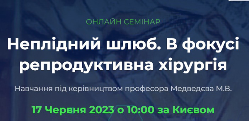 17 червня 2023 р. о 10:00 за Києвом відбудеться вебінар «Неплідний шлюб. В фокусі репродуктивна хірургія».